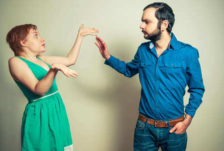 Man and woman couple in a relationship quarrel, yelling, psychological violence in the family, problems in a real relationship between people