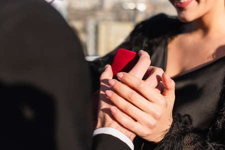 cropped view of man making proposal to woman outdoors