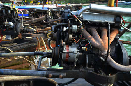 A close-up of a motor engine on a Cambodian longtail boat. Koh Rong Samloem area, Cambodia