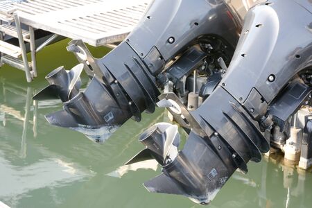 Close up of an outboard engine propeller.