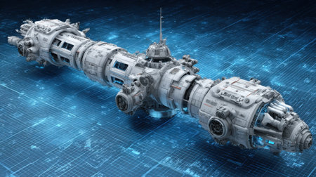 This image features a futuristic spacecraft design showcasing intricate technological details set against a vibrant digital background, perfect for science fiction themes.