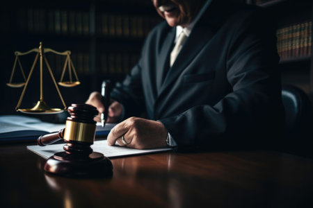 Step into the world of justice and legal proceedings with this impactful image featuring a judge's gavel surrounded by lawyers and counselors working diligently on documents in a courtroom. The image captures the essence of legal law, advice, and the pursuit of justice. With a powerful visual composition and attention to detail, this image is perfect for projects related to the legal profession, law firms, and concepts of justice and counsel.
