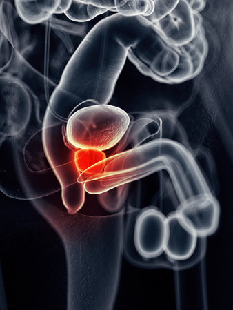 Illustration of male urinary and prostate health issues. Useful for medical, urology, or cancer awareness content. Highlighting pain, discomfort, and health concerns in men. Prostate cancer