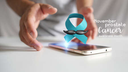 November prostate cancer awareness month blue ribbon. men cancer prevention