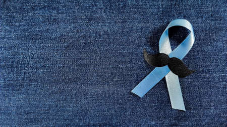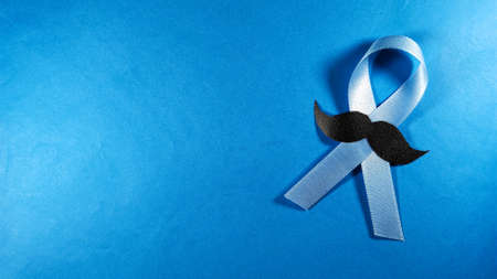 November Prostate Cancer Awareness month. Blue Ribbon with mustache for supporting people living and illness. Healthcare, International men, Father and World cancer day concept.