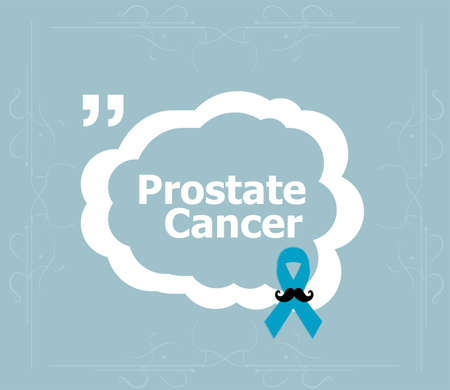 Prostate cancer quote on white paper list article with blue ribbon and moustache. November Prostate Cancer Awareness month