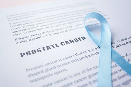 Prostate cancer quote on white paper list article with blue ribbon November Prostate Cancer Awareness month