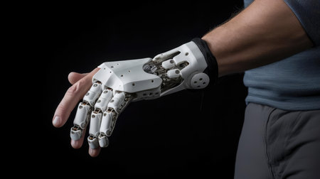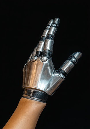 This image showcases a detailed and realistic prosthetic hand, highlighting its intricate mechanical components and design, emphasizing innovation in assistive technology.