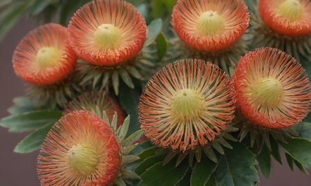 Beautiful protea flowers blooming in the garden, close up