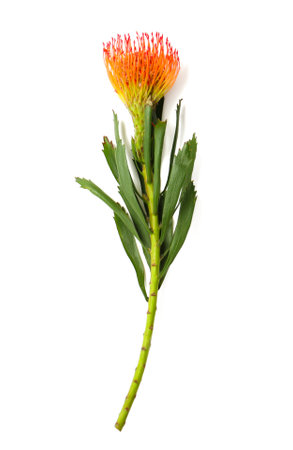 Beautiful protea flower on white background. tropical plant