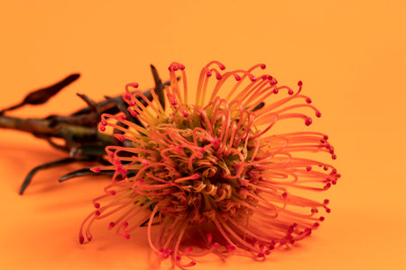 Close up of a pincushion protea flower in bloom
