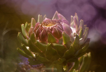 Close-Up Vibrant Purple Artichoke Bloom - An Edible Flower Bud Flourishes in the Garden