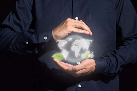 human hand is showing the symbol of carrying the world digital Environmental concept