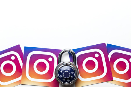 OXFORD, UK - AUGUST 22nd 2018: Instagram data security concept. Instagram logos printed onto paper with a combination padlock