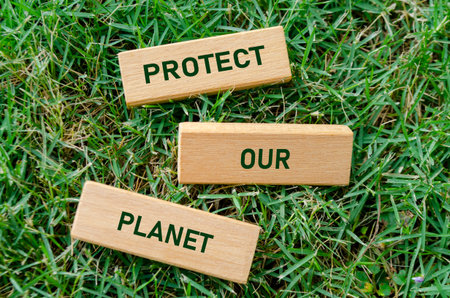 Protect Our Planet text on wooden blocks, a powerful reminder to care for Earth’s future. Global conservation concept.
