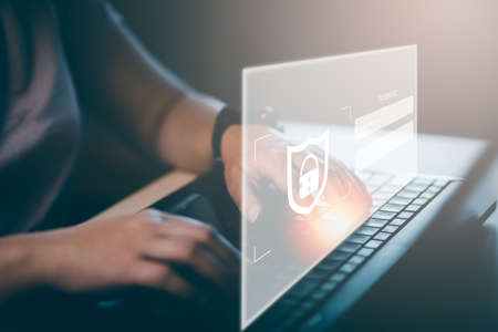 Cyber ​​Security. businessman using computer Network Login, Internet Security, Prevent Unauthorized Access, Personal Information, Authentication, Top Secret, Use the Internet Safely.