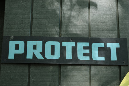 Protect sign on green wall