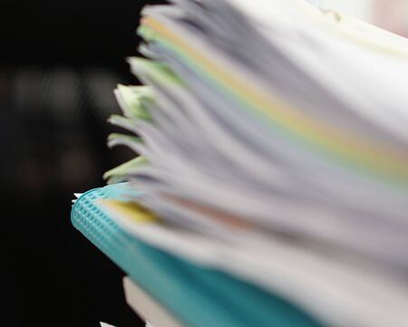 Detail of open folder filled with documents. Symbol of business or bureaucracy,