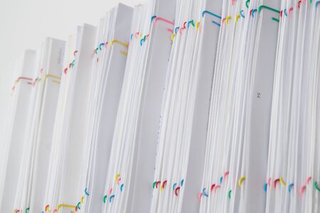 Stack of Paper documents with clip, Pile of unfinished documents on office desk folders. Business papers for Annual Report files, Document is written,presented. Business offices concept.