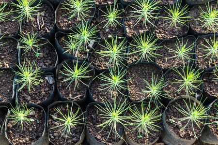 Gardening concept a farmer culling the green seedlings before removing them from pots to growing in the prepared soil plot.