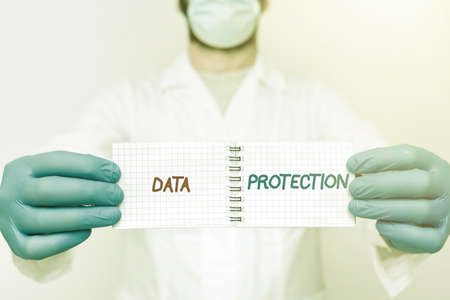 Sign displaying Data Protection. Business idea Protect IP addresses and personal data from harmful software Scientist Presenting New Research, Chemist Planning Advance Procedures
