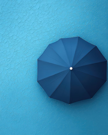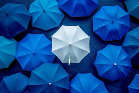 Group of Blue and White Umbrellas on Wall, A Vibrant Display of Protection
