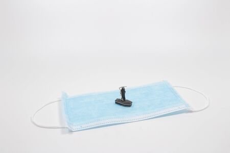 medical mask stopping the domino blocks falling concept of isolating the virus by wearing a mask