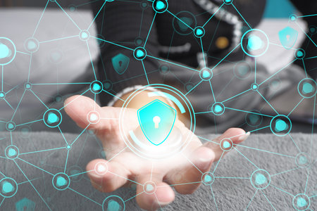 Data Security system Shield Protection Verification concept with computer halogram scanning on data of business and all technology