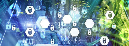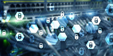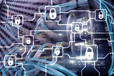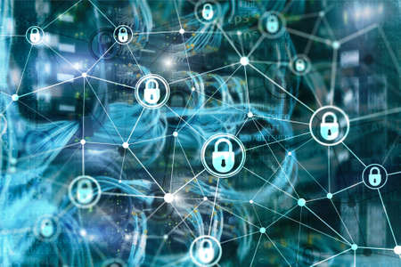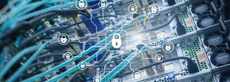 Data protection, Cyber security, information privacy. Internet and technology concept. Server room background.