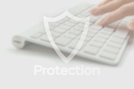 Safety computer security concept. Internet protection symbol on blured keyboard background. Concept image of security vulnerability and information leaks
