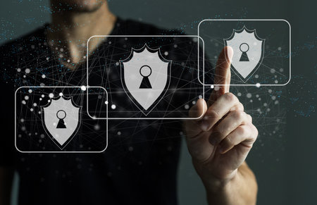 Person using a laptop computer with technology cybersecurity and privacy concept. protection and safe data for global network security.