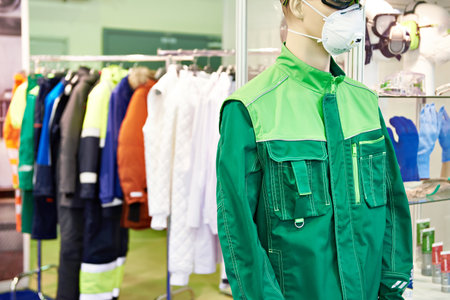 Presentation of a work clothes set for a physical worker to work in a factory.