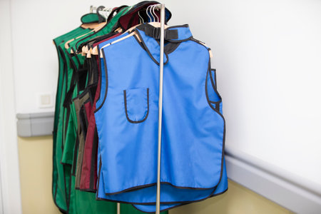 Rack of lead aprons used for x-ray protection in operating room, hospital