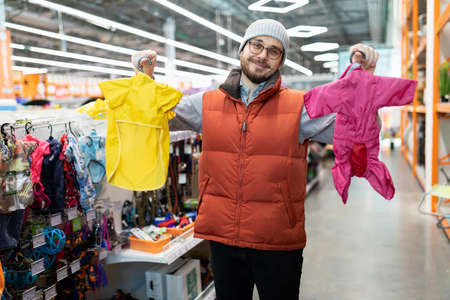 Modern fashion store. Buyers choose clothes. Shirts, hoodies, blouses and half-sweaters, a sweater on a hanger in a clothing store close-up. Sale and shopping in stores. Soft focus.