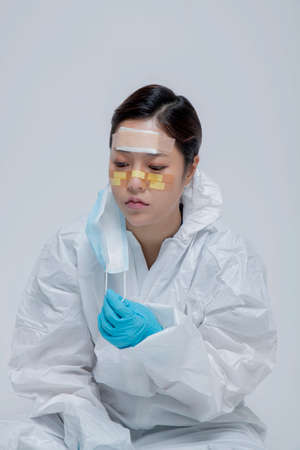 Pandemic Concept, Asian Male wearing Personal protective equipment PPE Suit