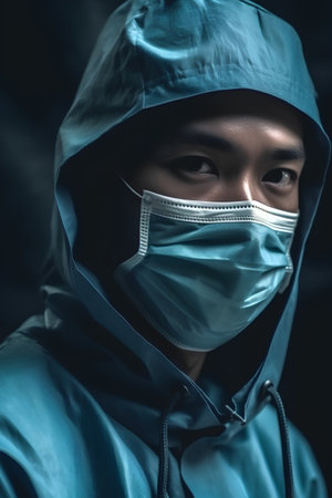 Portrait of a male surgeon wearing a surgical mask in a dark room