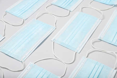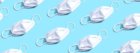 Background of white medical masks. Antiviral protection. Health protection.
