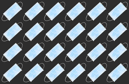 Medical face mask in black background. Repetitive pattern of medical face masks to protect and prevent covid coronavirus 19.