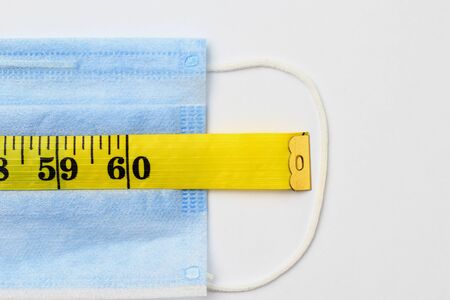 coronavirus icons as facial mask and folding meter on black background representing social distancing concept educational clear way