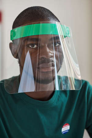 Close-up of African young man wearing protective mask looking at camera