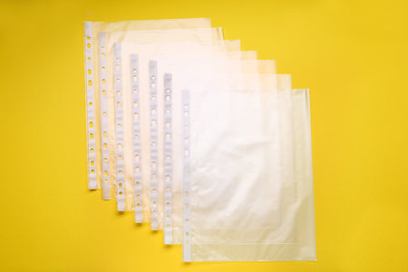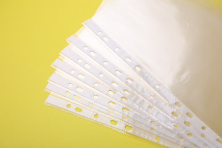 Punched pockets on yellow background, flat lay