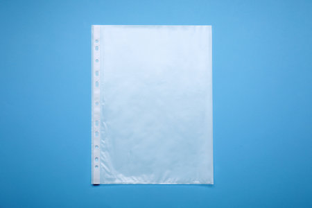 Punched pocket on light blue background, top view