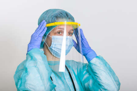 Medical staff wearing face shield and medical mask for protect coronavirus covid-19 and PPE suit for Coronavirus outbreak or Covid-19.
