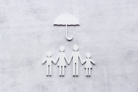 Family figure under umbrella. Insurance and family protection concept