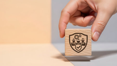 Building Safety: Wooden Blocks Depicting Insurance and Protection Concepts