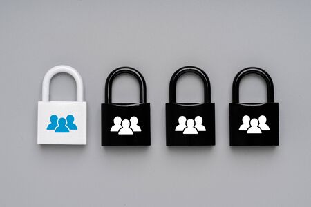 Wooden cube with an open and closed lock pattern. Day of protection of personal data. Protection of personal information