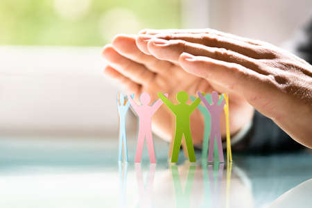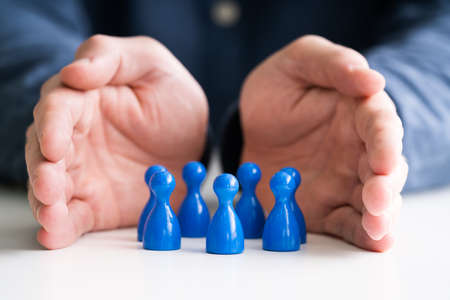 Hand Protecting Inclusive Equal Pawns At Workplace