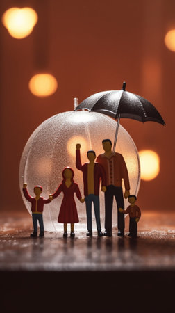 Generative AI : concept the social protection of the family family took refuge from the miseries and rain under an umbrella