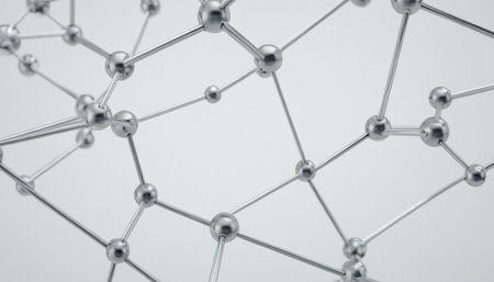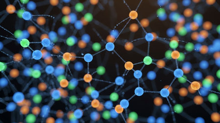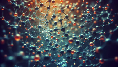 This abstract image features a detailed representation of molecular structures with interconnected atoms and colorful bonds, ideal for illustrating science and technology concepts.