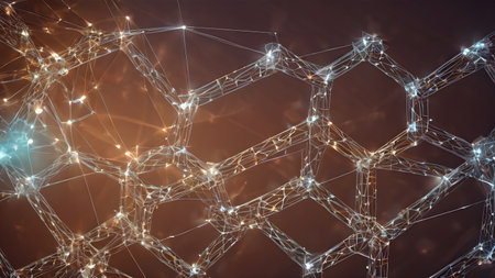 This abstract image features a digital molecular structure with interconnected hexagons and glowing lines. It symbolizes science, technology, and innovation in modern research.